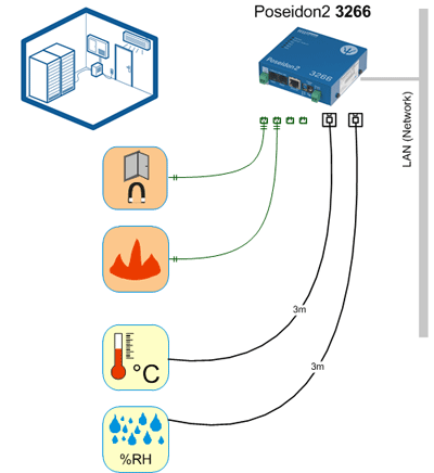 Poseidon2 3266 دستگاهی جهت نظارت و خواندن از راه دور سنسورهای متصل به آن، تحت شبکه می باشد. اندازه گیری دما، ولتاژ، وضعیت ورودیهای دیجیتال و دیگر سنسورهای خارجی.
