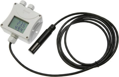 سنسور ترکیبی دما و رطوبت با صفحه نمایش و کابل سنسور، قابل استفاده در فضای داخلی و فضای باز، ارتباط از طریق پورت RS-485، قابلیت اتصال به دستگاه 4002 Poseidon2- دما : منفی 30 تا مثبت 105 سانتی گراد
