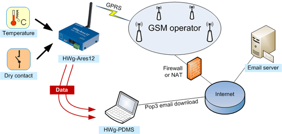 داده های اندازه گیری شده را می توان وارد نرم افزار تحت ویندوز HWg-PDMS نمود همچنین دستگاه قادر خواهد بود اطلاعات را مستقیما به یک سرور ارسال و یا به صورت گزارشهای دوره ای ایمیل نماید.