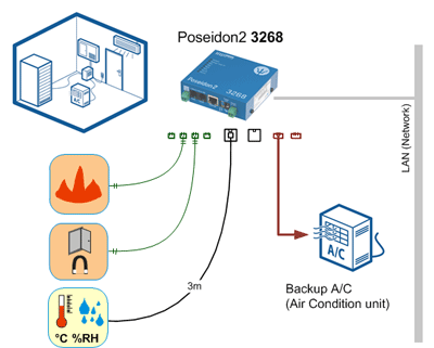 مانیتورینگ سنسورها و کنترل I / O تحت شبکه. ذخیره داده های اندازه گیری شده در حافظه داخلی (Data Logger)، هشدار به درجه حرارت بالا، ارسال ایمیل هشدار و اتصال به سیستم سنسور ابری از قابلیت های دستگاه Poseidon2 3268 می باشد.